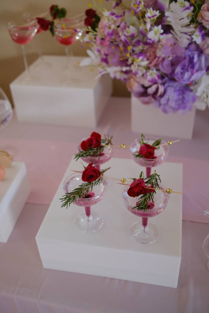 Every detail mattered. Drinks were served in sleek glassware, topped with edible flowers and delicate garnishes to complement the soft pastel décor. The bar became a centerpiece of beauty, taste, and elegance.
